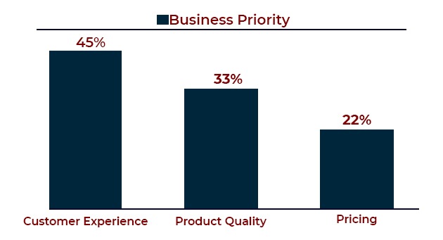 According to experts, the below should be the top business priorities for product-and service-based companies. It is no surprise that customer service tops the list.